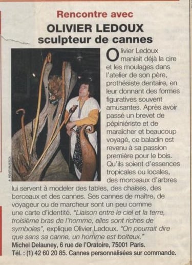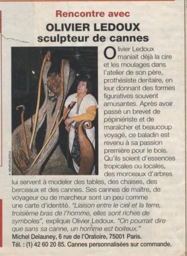 "Les cannes furent mes premiers totems, pont énergétique de la paume (cœur) à la terre nourricière. Éveil d’identités « totemisées » en quête de leur marcheur, de leur Maître, de leur Dandy et de leur Roi."