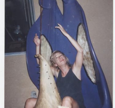 " En projet, un culbuto géant dans lequel on peut s'assoir et chanter, bercé par son chant aux limites de l'équilibre...