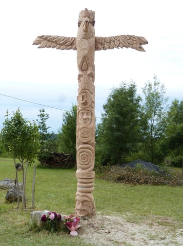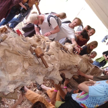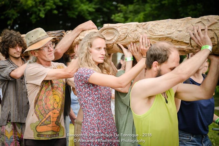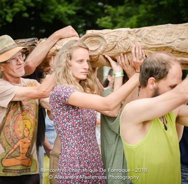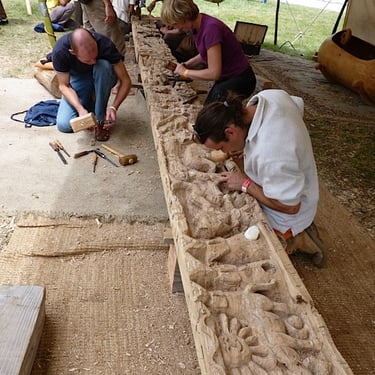 Nous travaillerons ensemble à la création d'un totem collectif qui restera sur les lieux, un symbole de notre aventure partagée. Si vous le souhaitez, des outils tels que des gouges et un maillet sont disponibles à l'achat sur place.